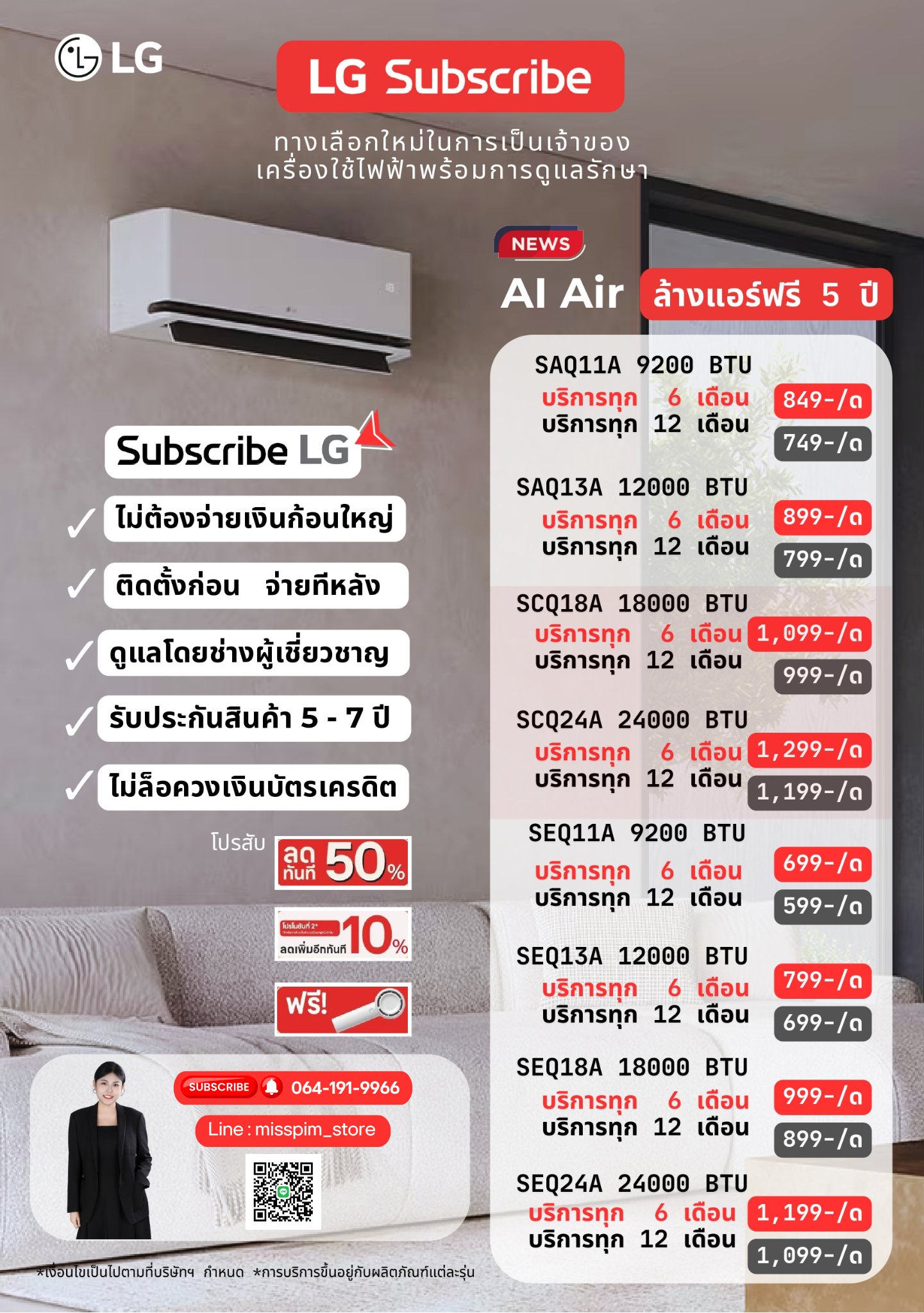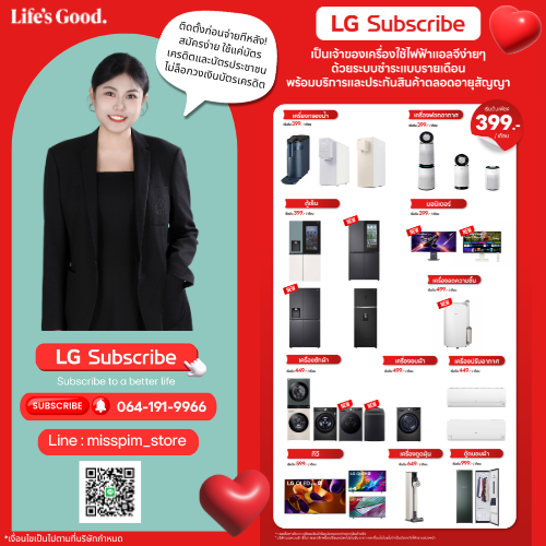 LGSubscribe #เครื่องใช้ไฟฟ้าแอลจี #ชีวิตดีดีไปกับLG #โปรโมชั่นสุดคุ้ม #LGTH #เครื่องซักผ้าLG #ตู้เย็นLG #เครื่องฟอกอากาศLG #ทีวีLG #แอลจีซับสไครบ์