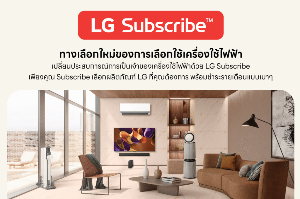 ทางเลือกใหม่ที่จะให้คุณสามารถเป็นเจ้าของเครื่องใช้ไฟฟ้า LG ได้อย่างง่ายดายแบบรายเดือน พร้อมรับบริการดูแลรักษาโดยผู้เชี่ยวชาญจาก LG และประกันสินค้า* ตลอดอายุสัญญา เพื่อความสะดวกสบาย ตอบโจทย์กับไลฟ์สไตล์ และใช้งานได้อย่างสบายใจในเรื่องความปลอดภัยยิ่งขึ้น